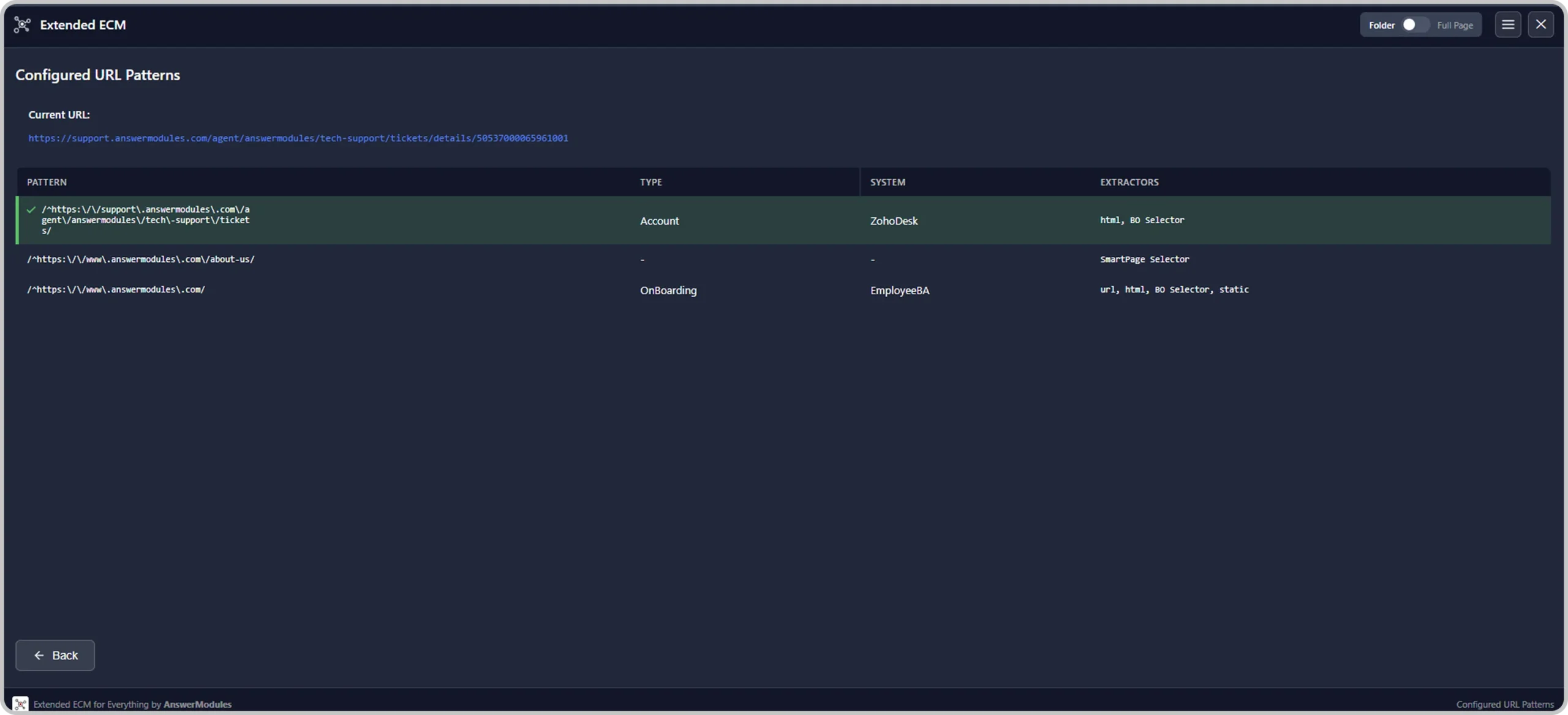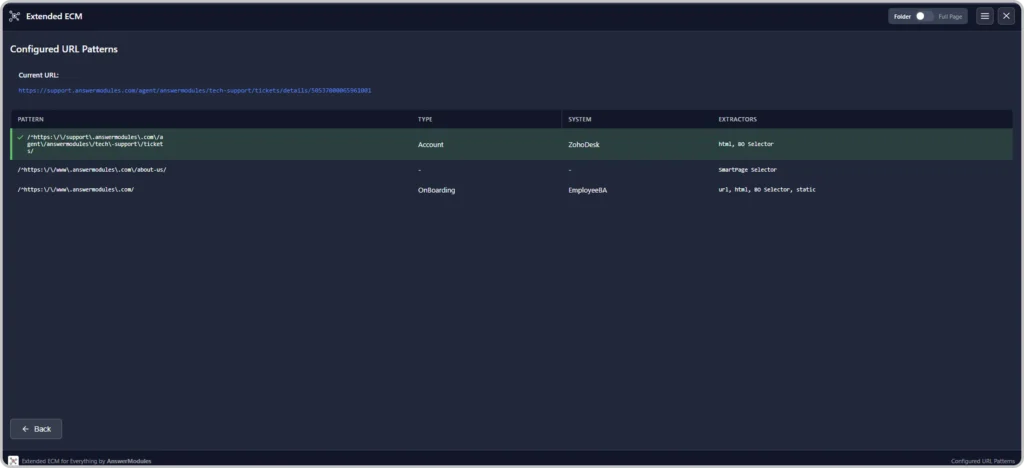 Extractors are executed sequentially until a match is found, ensuring flexibility across modern, legacy, and inconsistent applications. The identified business object is then mapped to the corresponding Content Management configuration (business object type and leading system).