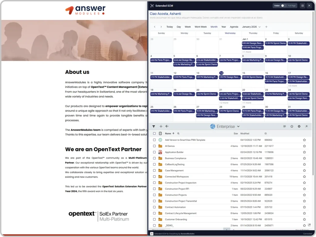 Content Management for Everything – Browser Plugin turns OpenText Content Management into a contextual service that follows users across applications – bringing governed content, processes, and smart UI exactly where they work.